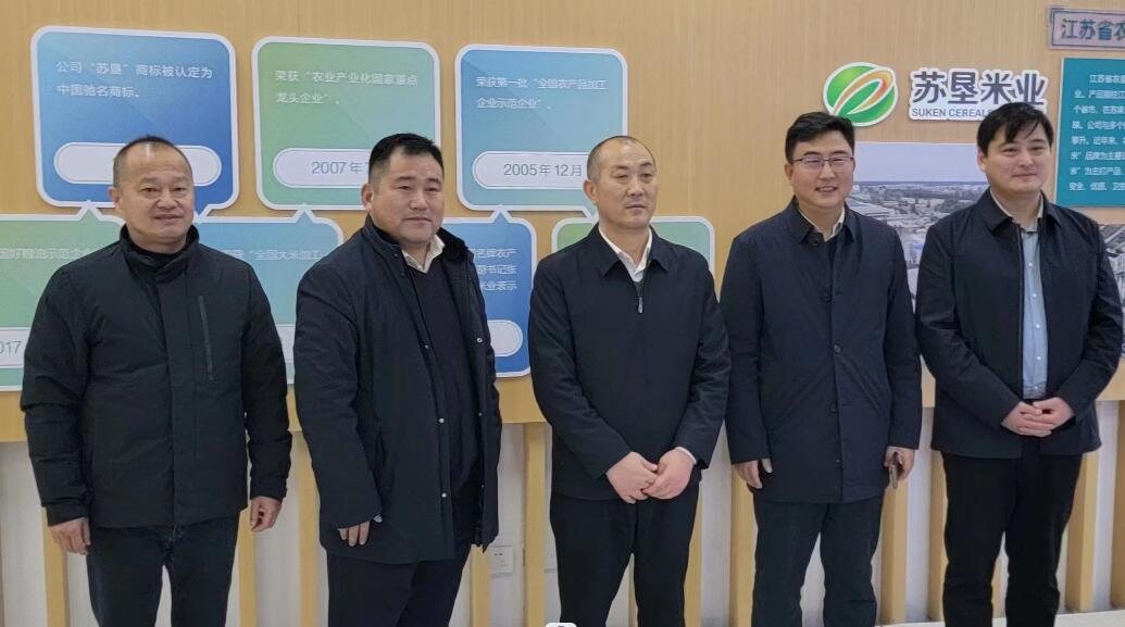 1月12日下午,苏垦米业党委副书记、总经理许海峰,苏垦米业副总经理王祚鼎一行受宿迁市裕农农业发展集团有限公司(以下简称“裕农集团”)邀请,前往宿豫区粮食产业园进行业务考察交流。 裕农集团董事长孙华一行对许海峰一行的到访表示热烈欢迎,先后陪同参观了京东农业科技示范园、宿豫区粮食产业园,并做详细介绍。孙华表示,裕农集团将利用好“宿迁籼米”的优势,打造多元化、智能化、标准化、融合化的粮食产业园。许海峰对裕农集团取得的成绩表示充分肯定,就京东农业科技示范园、宿豫区粮食产业园的建设与管理情况给予高度评价。 参观结束后,双方就推进合作进行深入探讨和交流,表达了对后期合作的良好愿望,希望双方加强沟通对接,共同推动产业高质量发展再上新台阶,携手开创更加美好的未来。